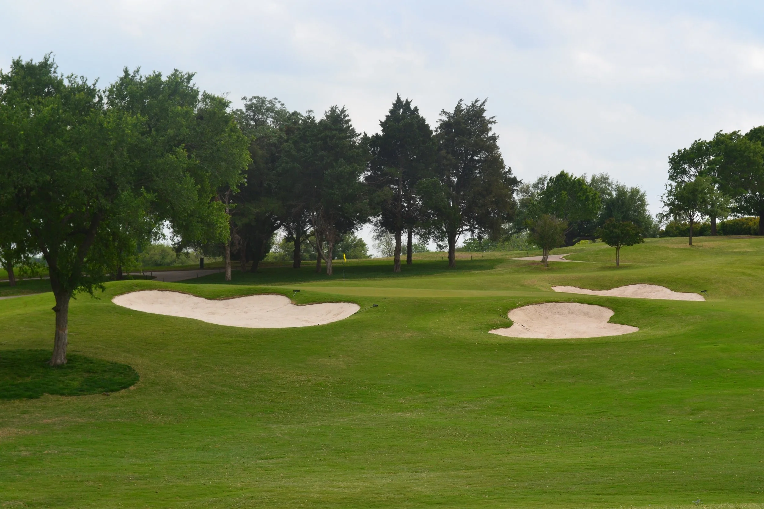 3-man scramble, two teams play together on each hole